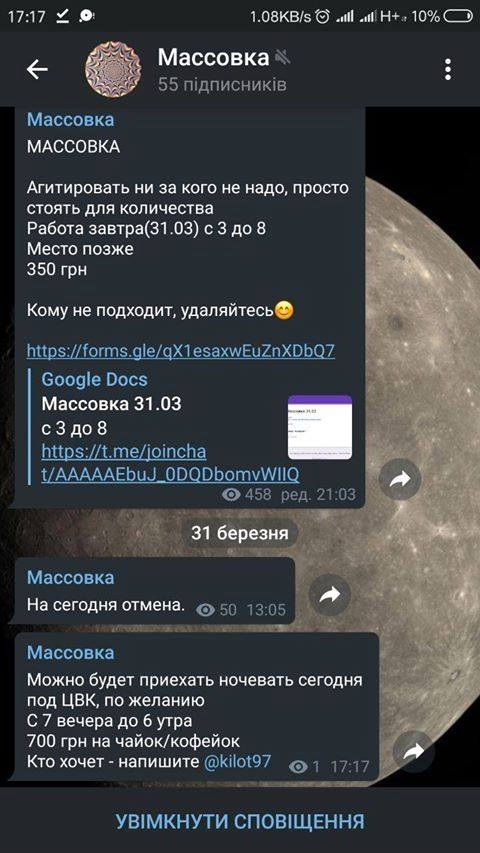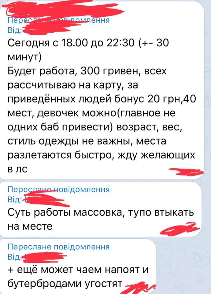 А движение «ЧЕСТНО» сообщает о сборе людей посредством наема через мессенджеры с почасовой оплатой стояния.