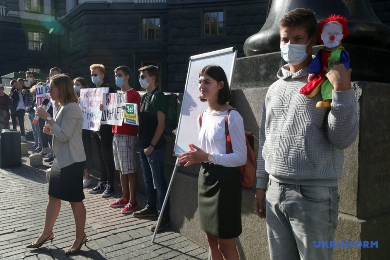 Под Кабмином проходит акция с требованием отставки в. и. о. главы МОН Шкарлета