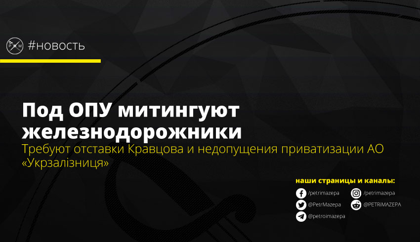 Под зданием Офиса президента Украины в Киеве проходит митинг профсоюзов железнодорожников и транспортных строителей. Они требуют отставки главы правления АО «Укрзалiзниця» Евгения Кравцова, повышения зарплат и недопущения приватизации компании.