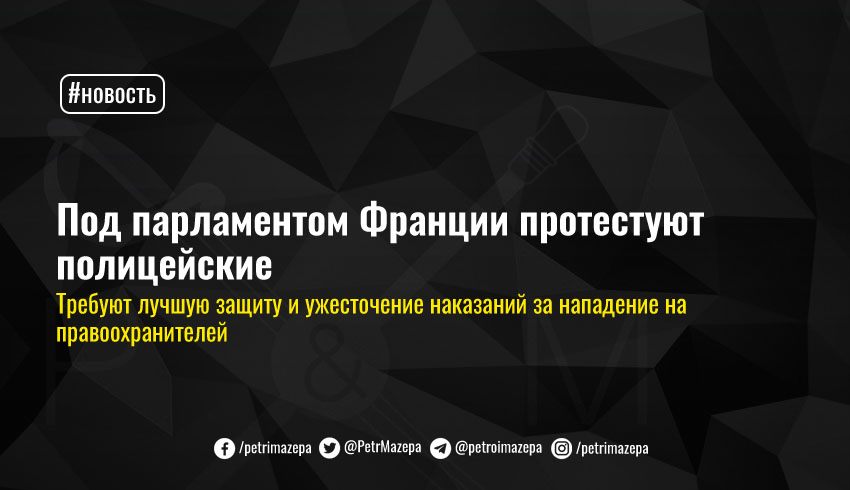 Перед Национальной ассамблеей Франции проходит акция протеста сотрудников полиции. Около тысячи полицейских требуют от властей политической и финансовой поддержки сил правопорядка, а также ужесточения наказаний за нападение на правоохранителей.
