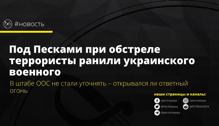 Вооруженные подразделения Российской Федерации недалеко от населенного пункта Пески открыли огонь из стрелкового оружия в сторону наших позиций. Вследствие вражеского выстрела один военнослужащий Объединенных сил получил пулевое сквозное ранение в ногу. Воину предоставили помощь и доставили в лечебное учреждение. Состояние здоровья военнослужащего удовлетворительное, сообщает штаб ООС. При этом про ответный огонь или его отсутствие информации попросту нет.