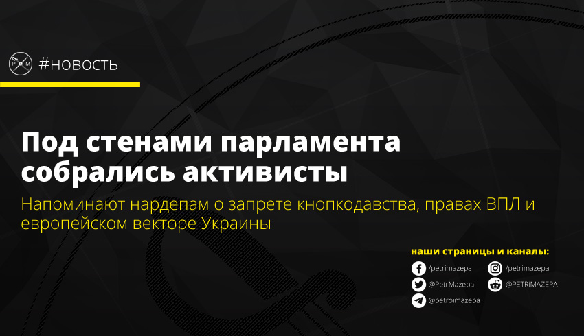 В день первого заседания Верховной Рады IX созыва под зданием парламента проходят сразу несколько мирных акций. Активисты пришли напомнить народным избранникам о запрете кнопкодавства, избирательных правах переселенцев и европейском векторе развития страны.