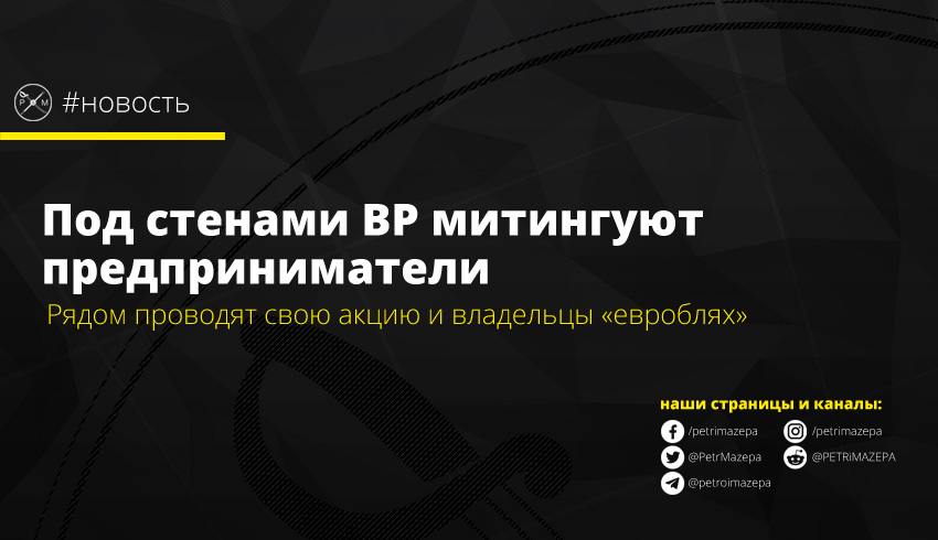 Под Верховной Радой проходит митинг предпринимателей, которые требуют парламентариев не поддерживать внесение изменений в Налоговый кодекс и некоторые другие законопроекты. Кроме того, под зданием парламента протестуют владельцы автомобилей на еврономерах. Они требуют от депутатов принять законопроект №3704 «О внесении изменений в Налоговый кодекс Украины об упорядочении структуры акцизного налога».