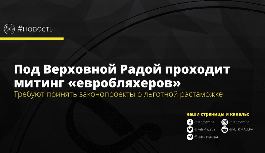 Под Верховной Радой проходит митинг организации «АвтоЕвроСила» - его участники требуют у парламентариев срочно рассмотреть и принять законопроекты №3704, №3705 и №3706. Они верят, что в случае принятия законопроектов растаможить автомобиль можно будет за 300-600 евро.