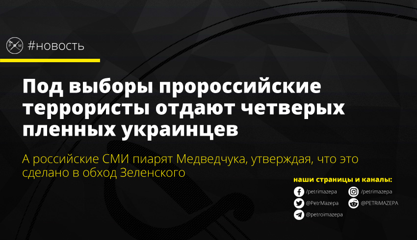 Как неоднократно предполагалось, накануне выборов подконтрольные россиянам террористы из ОРДЛО соглашаются отдать продвигаемым страной-агрессором украинским политикам некоторых военнопленных. Сегодня стало известно, что «Медведчук договорился об освобождении пленных в обход Зеленского». Конкретнее – речь идет о трех военнопленных и одном гражданском.