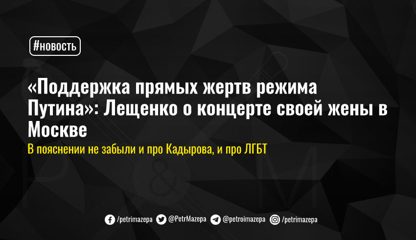«Что касается конкретно мероприятий, которые происходили в России, то на самом деле она в стране, которая ущемляет эту культуру и представителей этой культуры… Потому что в России это мероприятие… проходило в том числе с участием широкого привлечения представителей ЛГБТ-сообщества — меньшинства, которое страдает от Путина, от Кадырова», - цитирует заявление Лещенко «Радио.Свобода».