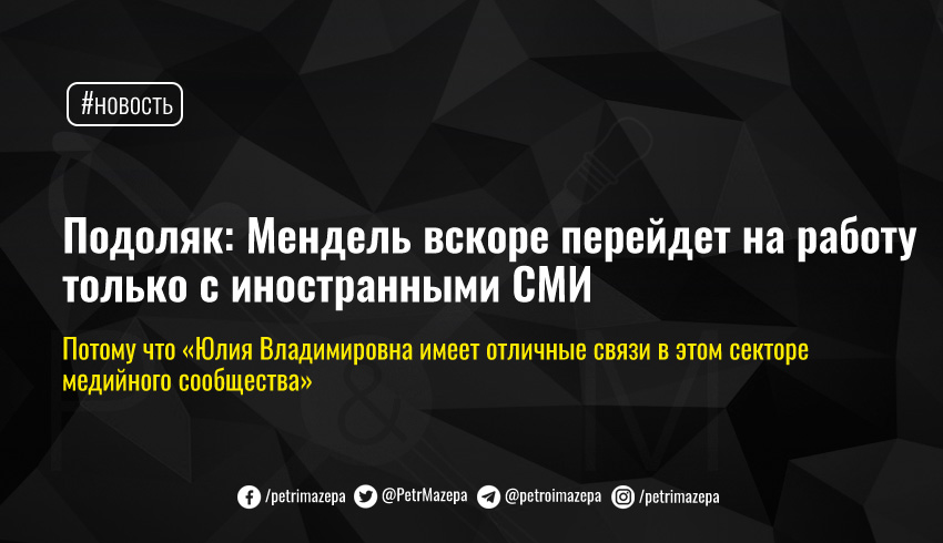 Подоляк: Мендель вскоре перейдет на работу только с иностранными СМИ