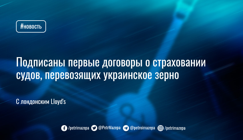 Синдикаты лондонского Lloyd's подписали первые договоры о страховании судов, перевозящих украинское зерно после разблокирования портов. Ожидается, что это побуждает судовладельцев отправить свой транспорт в Украину.