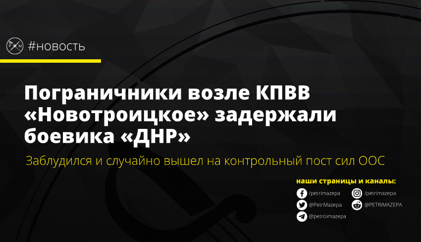 Украинские пограничники возле КПВВ «Новотроицкое» задержали боевика так называемой «ДНР». Он направлялся к своим позициям и случайно вышел на контрольный пост сил ООС.