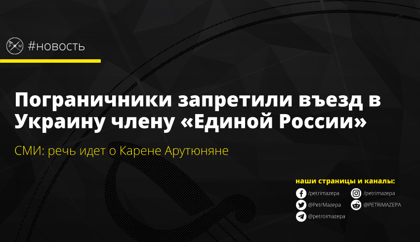 Члену политической партии Единой России, у которого есть медаль «За возвращение Крыма», пограничники отказали во въезде и запретили посещать Украину сроком на три года. В СМИ сообщают, что речь идет о Карене Арутюняне.