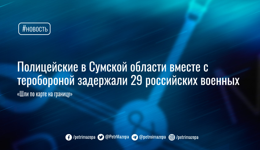 Полицейские в Сумской области вместе с теробороной задержали 29 российских военнослужащих.