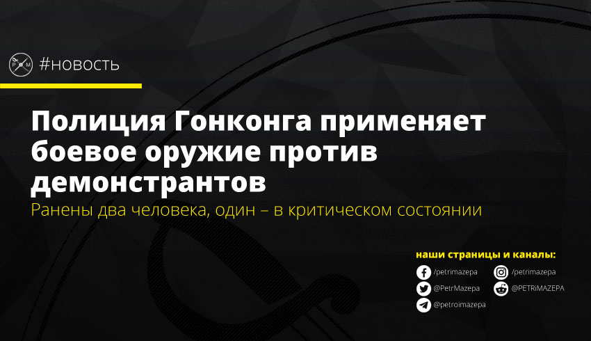 Полиция Гонконга применяет боевое оружие против протестующих – как минимум два человека получили огнестрельные ранения, один находится в критическом состоянии и пережил остановку сердца. Правительство официально подтвердило факт применения полицейским боевого оружия, однако опровергло обвинения в адрес вышестоящих офицеров полиции.