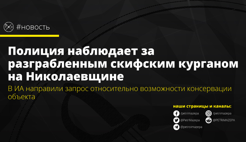 Начальник полиции Николаевской области Сергей Шайхет распорядился выставить возле кургана круглосуточное патрулирование. Это заявление появилось после неоднократных публикаций в СМИ о том, что скифский курган в селе Скобелево Казанковского района продолжают незаконно раскапывать.