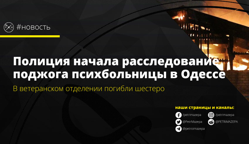 Полиция начала расследование по факту страшного пожара в одесской психиатрической больнице, по статьям об умышленном убийстве и нарушении пожарной безопасности. Основная версия возникновения возгорания в ветеранском отделении, приведшего к смерти шести человек – занесение огня извне. Президент Владимир Зеленский высказал соболезнования родным погибших и поручил премьер-министру Владимиру Гройсману создать госкомиссию по расследованию дела.
