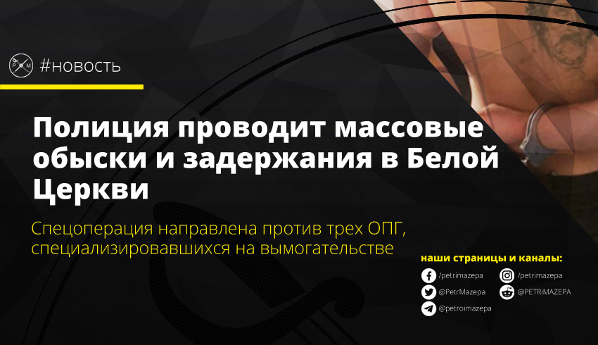 Субботнее утро для полиции Киевской области и жителей Белой Церкви началось с ряда обысков. Начальник областной полиции Андрей Небытов оперативно предупредил всех через Facebook. Позднее появились некоторые детали – причиной сегодняшней активности полиции стала деятельность сразу трех преступных группировок, которые занимались вымогательством.