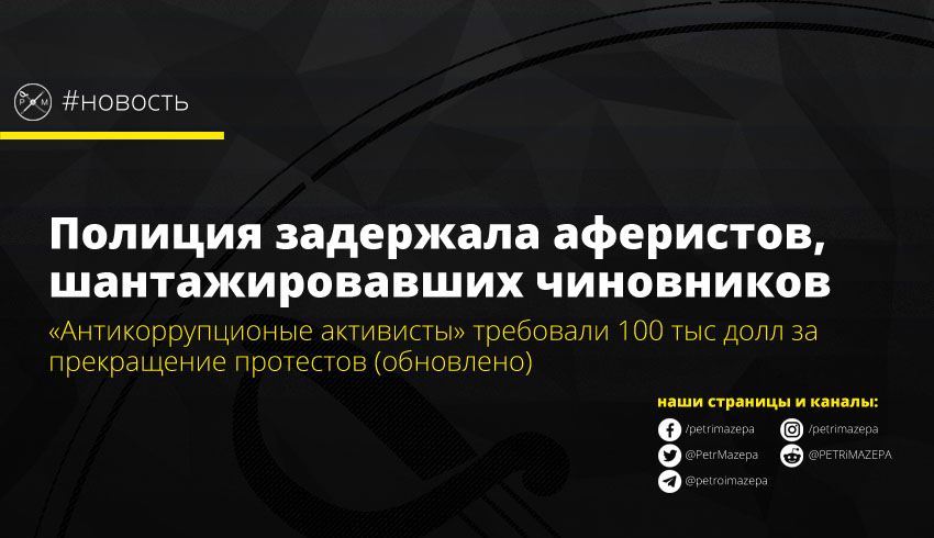Как позже пояснили в ГПУ, задержанные шантажисты прикрывались деятельностью общественной организации «Стоп коррупции», а деньги они требовали у и.о. Госсекретаря Министерства экологии и природных ресурсов Украины. За 100 тысяч долларов «активисты» обещали прекратить намеренно организованные ими акции протеста с требованием уволить чиновника с должности, а также перестать подавать многочисленные обращения в правоохранительные органы касательно расследования якобы совершенных им служебных преступлений.