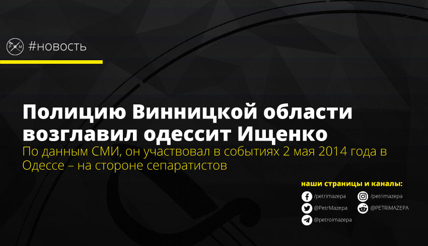 Сегодня глава Нацполиции Игорь Клименко представил нового главу полиции Винницкой области – им стал экс-замглавы полиции Одесской области Иван Ищенко. СМИ и одесские активисты сообщают, что Ищенко принимал пассивное участие в событиях 2 мая 2014 года в Одессе, в том числе позволил уничтожение основных вещественных доказательств в Доме профсоюзов. Однако сам Ищенко в начале мая упоминал, что со стороны ГБР к нему нет претензий.