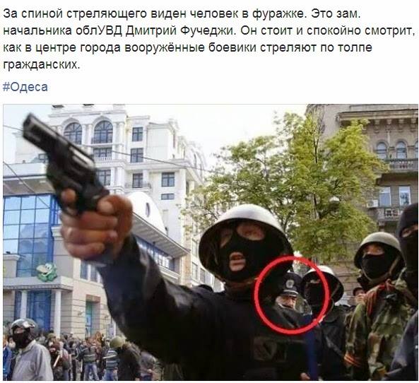 Вот замначальника одесской облУВД, Дмитрий Фучеджи. Вот человек в маске с пистолетом. Вот они вместе, один за спиной у другого.
