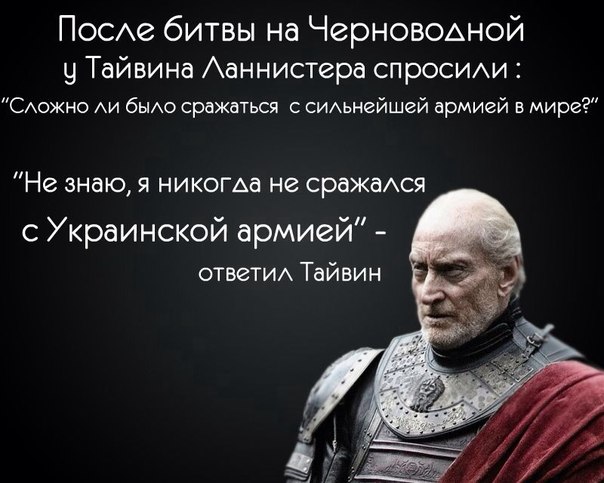 Фейк, конечно. Тайвин Ланнистер не участвовал в битве на Черноводной.