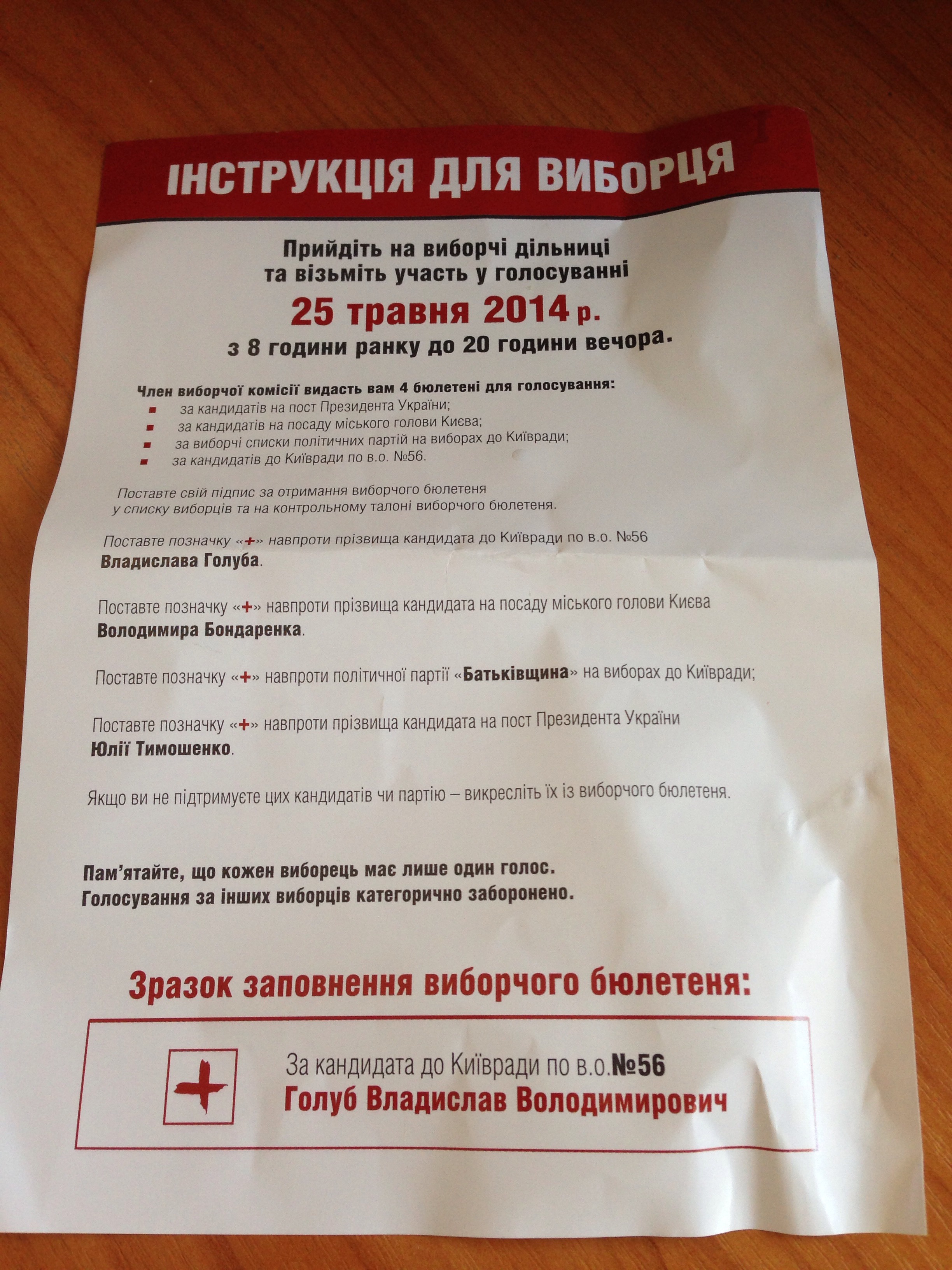 Однако. Следует различать высокое искусство пиара, и грязную и грубую предвыборную технологию порчи бюллетеней, которую предлагает избирателям партия «Батькивщина» руками господина Голуба. И вот о чем речь. Сегодня одна моя добрая знакомая нашла у себя в почтовом ящике вот такую штуку: