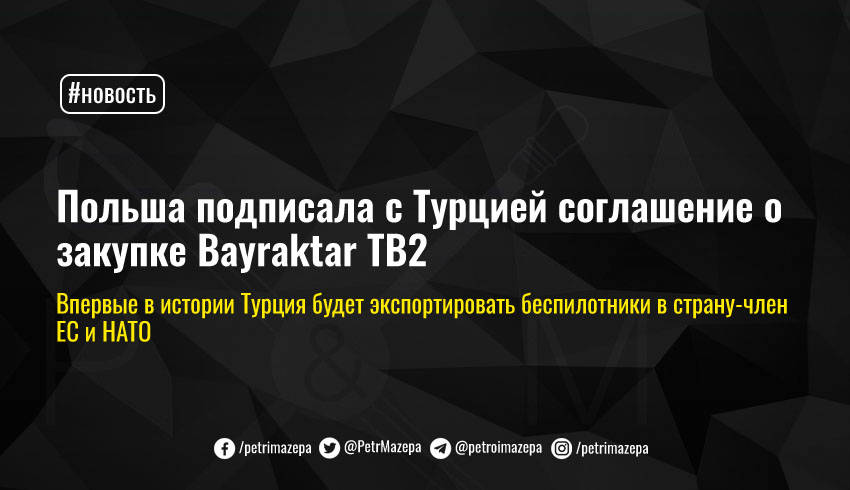 Ранее министр обороны Польши сообщал, что всего планируется закупить у Турции 24 беспилотника Bayraktar TB2. Первый комплекс поступит на вооружение армии Польши уже в 2022 году.