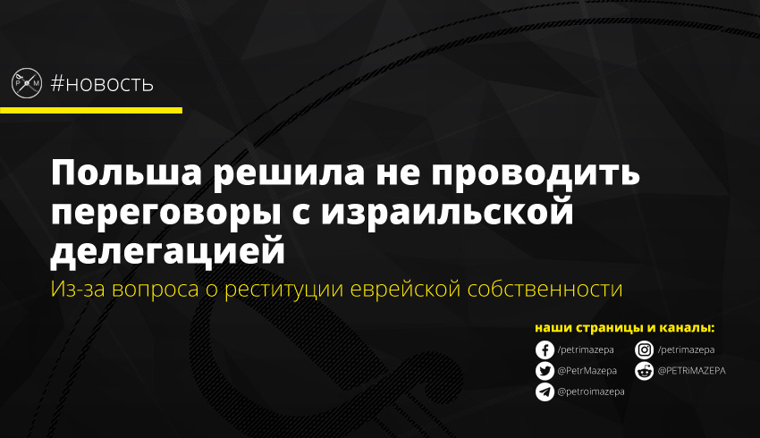 Польша приняла решение не проводить переговоры с делегацией Израиля. Причиной тому послужила смена участников с израильской стороны и попытки обсудить вопрос, о котором заранее не договаривались. Речь идет о реституции имущества, утраченного польскими евреями после Второй мировой войны.