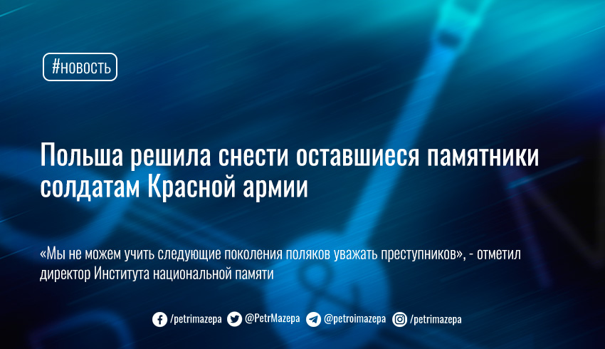 Президент Института национальной памяти Кароль Навроцки напомнил, что демонтаж советских памятников предусмотрен законом о декоммунизации публичного пространства Польши.