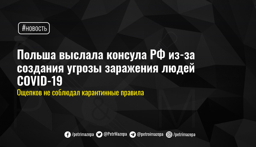 Польша обвинила высланного из страны консула РФ в Познани Игоря Ощепкова в несоблюдении карантинных правил. Это создавало угрозу заражения людей COVID-19.