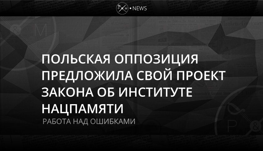 Польская оппозиционная партия «Гражданская платформа» представила свой проект закона об Институте национальной памяти. Таким образом оппозиция хочет исправить ошибки, допущенные в предыдущей версии и приведшие к обострению ситуации, – заявил лидер партии Гжежож Схетына.