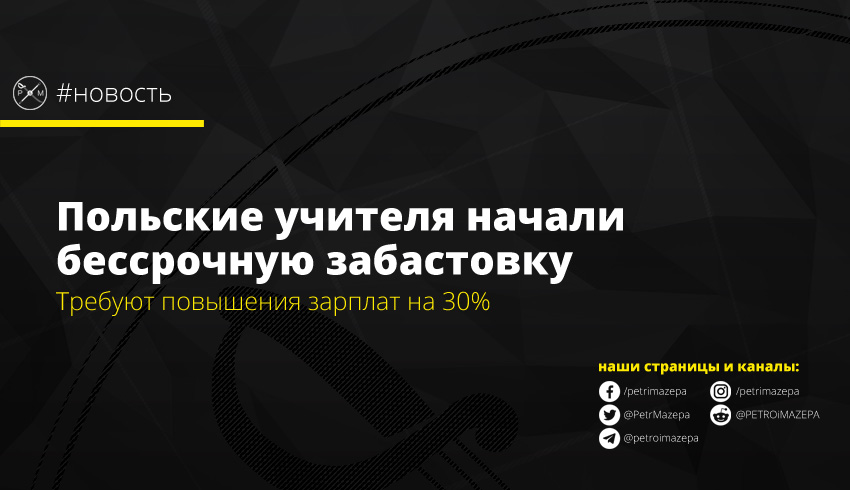 Сегодня в Польше началась бессрочная забастовка учителей. Причиной тому – желание работников образовательной отрасли получать более высокие зарплаты. В частности, педагоги школ и детских садов требуют уже в текущем году повысить оплату своей работы на 30%.