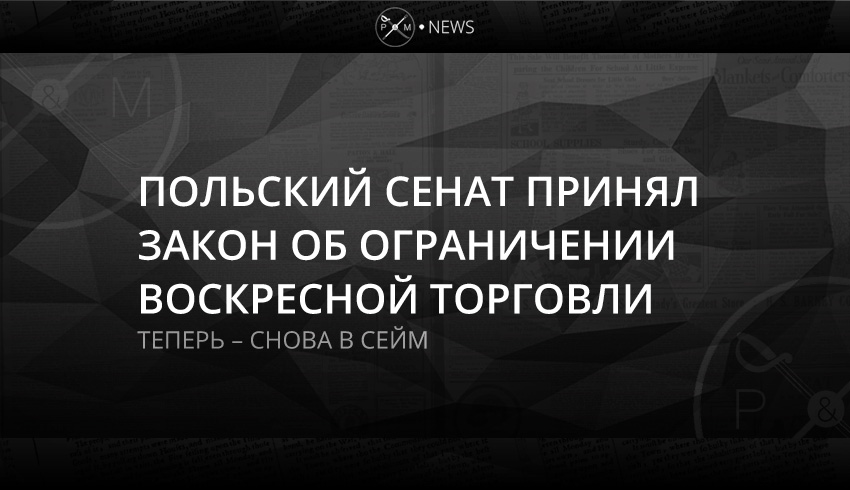 Сенат Польши принял с поправками закон об ограничении торговли по воскресеньям. Теперь «поправленный» законопроект возвращается на повторное рассмотрение в Сейм (там его уже рассматривали в конце ноября).