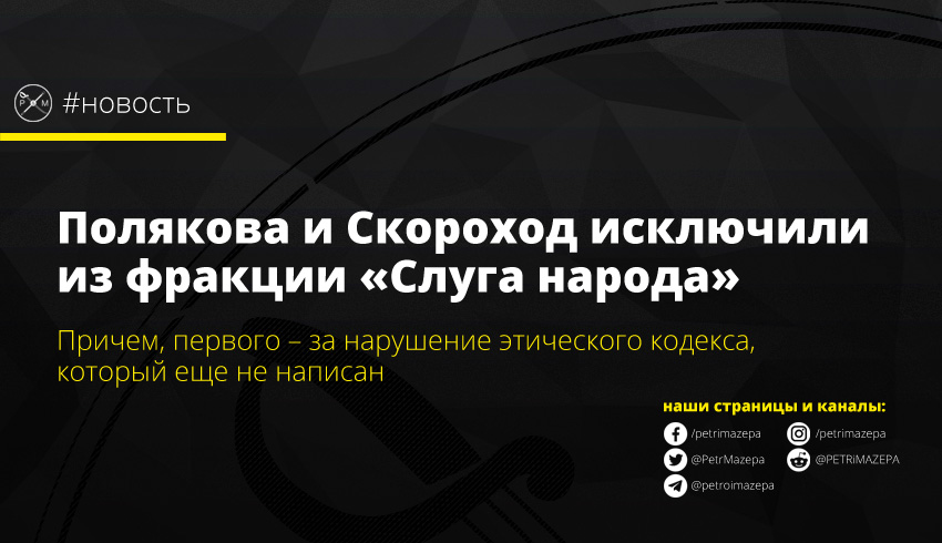 На заседании в пятницу фракция «Слуга народа» решила исключить из своих рядов нардепов Анну Скороход и Антона Полякова.