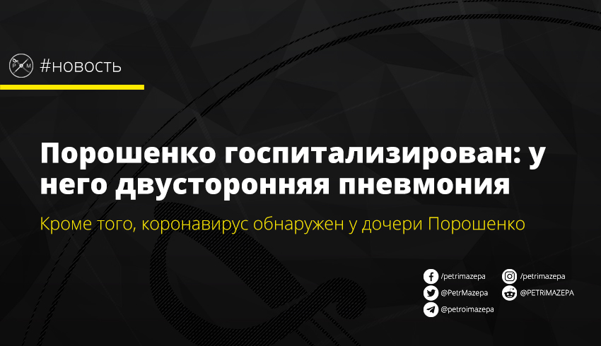 Пятого президента Украины, лидера Европейской солидарности Петра Порошенко госпитализировали с коронавирусом.