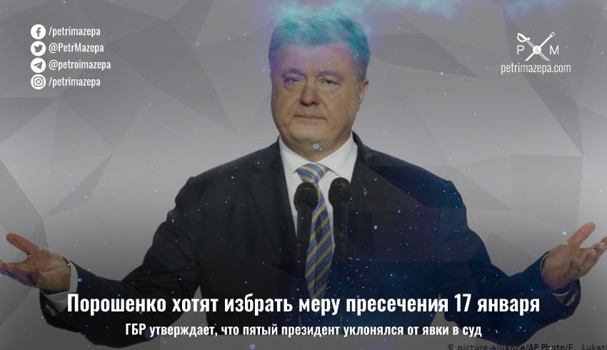Органы досудебного расследования рассчитывают на проведение всех необходимых процессуальных действий, в том числе избрание меры пресечения, в день возвращения в Украину пятого президента, лидера «Європейської солідарності» Петра Порошенко. Он, напомним, возвращается 17 января.