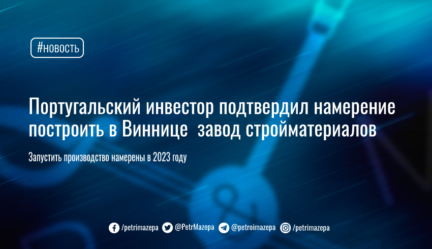 Португальский инвестор подтвердил намерение построить в Виннице завод стройматериалов