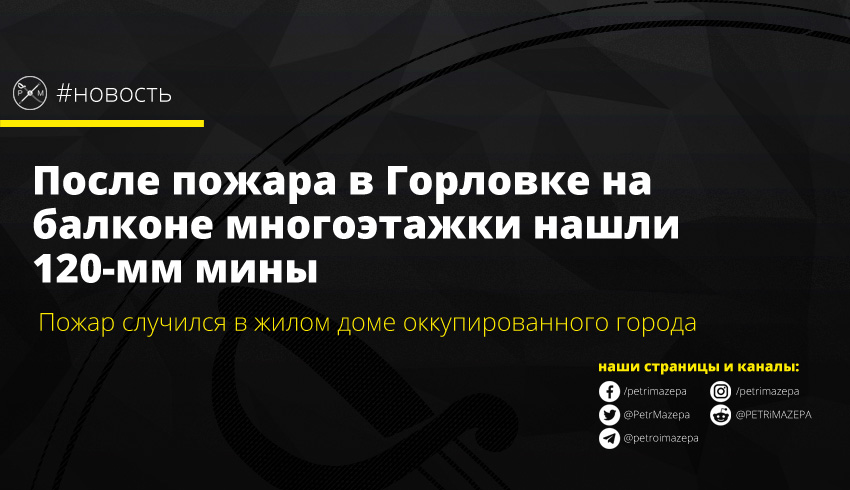В оккупированной Горловке, в Донецкой области, в многоэтажном жилом доме произошел сильный пожар. Тушить пришлось четыре этажа. Особенностью пожара было то, что на месте возгорания нашли две 120-мм мины.