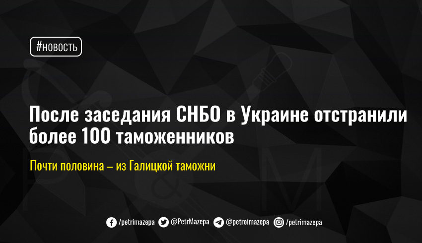 По завершению заседания СНБО, в рамках борьбы с коррупцией от выполнения должностных обязанностей отстранили более 100 сотрудников таможни. В том числе 17 руководителей таможен и таможенных постов.