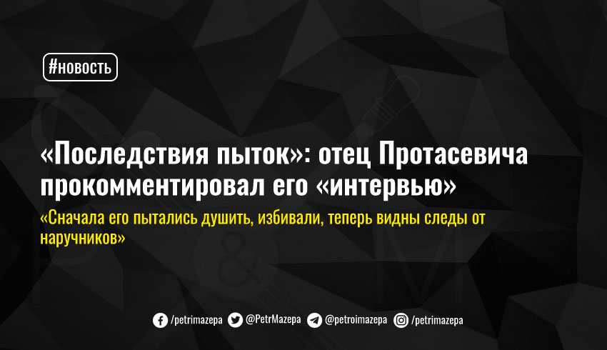 «Если кто-то смотрел этот фильм, он может заметить, что у Романа постоянно идет внутренняя борьба между тем, что он должен сказать, и между тем, что он никогда бы в жизни не сказал. И это очень видно по лицу. Я уверен, что это последствия более чем недельного его пребывания в застенках СИЗО КГБ, издевательств, пыток. Сначала его пытались душить, избивали, сейчас видны следы от наручников. Сколько его в них держали – страшно даже предположить. Его запугали», - сообщил Дмитрий Протасевич изданию «Настоящее время».