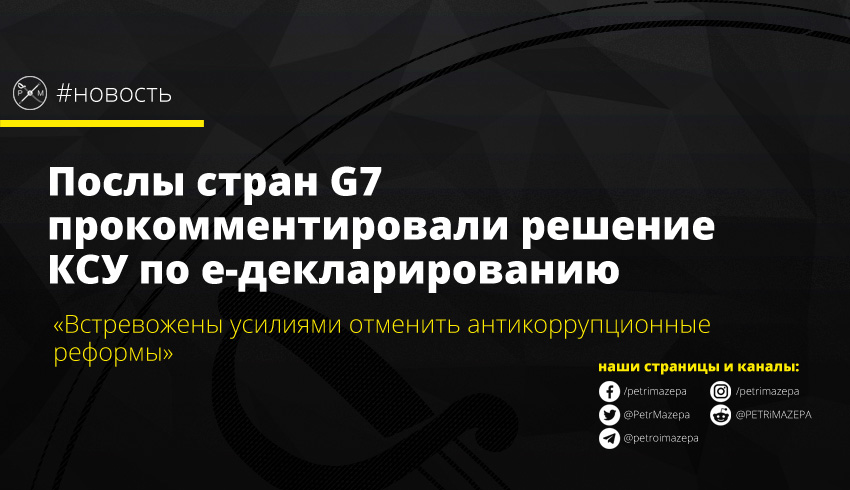 Послы стран «Большой семерки» прокомментировали решение КСУ от 27 октября про отмену наказания за недостоверное декларирование и про отмену доступа ко всем декларациям.