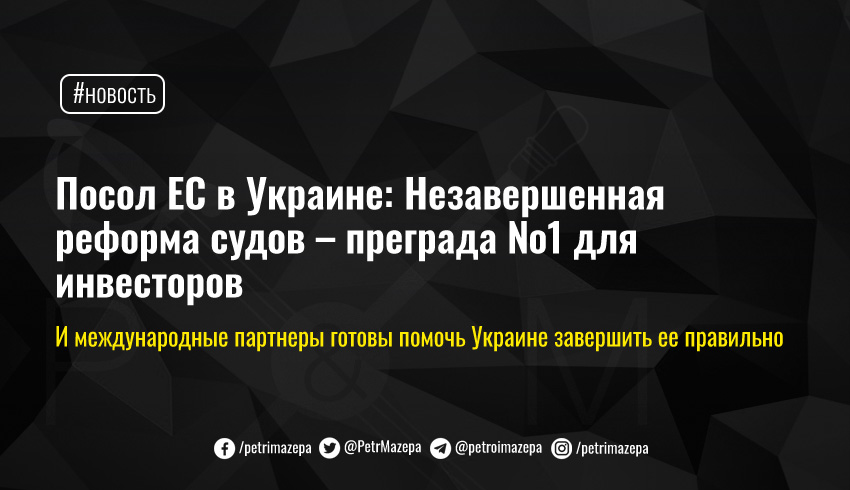 Посол ЕС в Украине: Незавершенная реформа судов – преграда №1 для инвесторов
