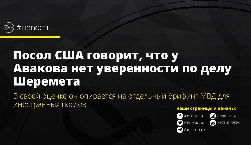 Посол США говорит, что у Авакова нет уверенности по делу Шеремета