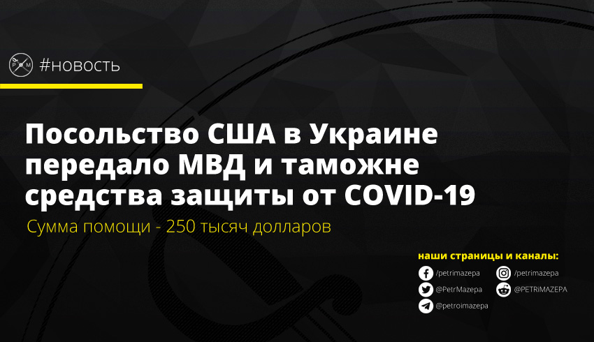 «В рамках нашей международной технической помощи отдел по правоохранительным вопросам посольства США передал средства индивидуальной защиты от COVID-19 на сумму около 250 тысяч долларов нашим украинским партнерам из Национальной полиции Украины, Государственной пограничной службы Украины и Государственной таможенной службы Украины», - сообщается на странице посольства в Facebook.