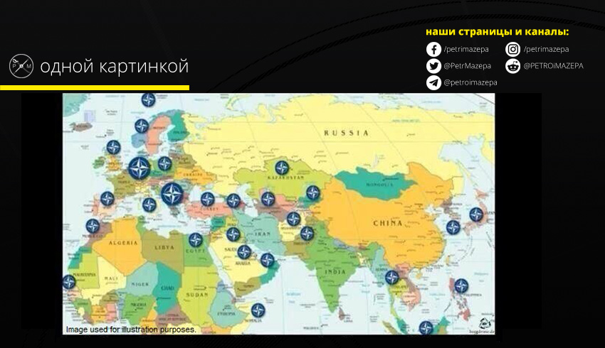 Рассказывая об агрессивной политике НАТО, целью которой россияне почему-то считают себя, они так торопились выдать иллюстрацию словам Лаврова, что взяли англоязычную карту. Естественно, в карте, созданной не в РФ, Крым показан украинским.