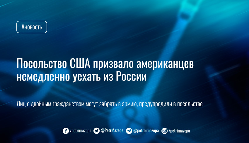 Посольство США в России призвало американских граждан немедленно покинуть территорию страны.