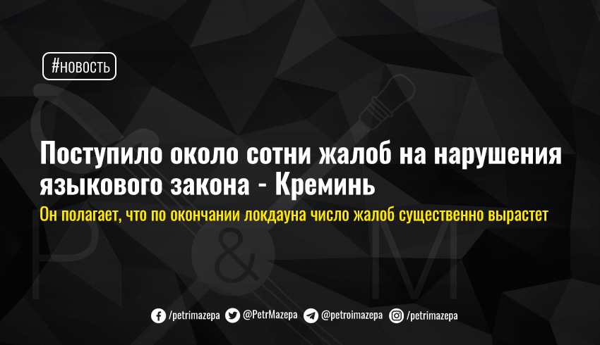 «По части из них мы, очевидно, будем принимать меры государственного контроля. Есть реакция общества на несоблюдение языкового законодательства на отдельных интернет-сайтах, во время общения в общественном транспорте с пассажирами. Ну, и помимо всего прочего, это жалобы, связанные с наружной рекламой», - сказал Кремень.