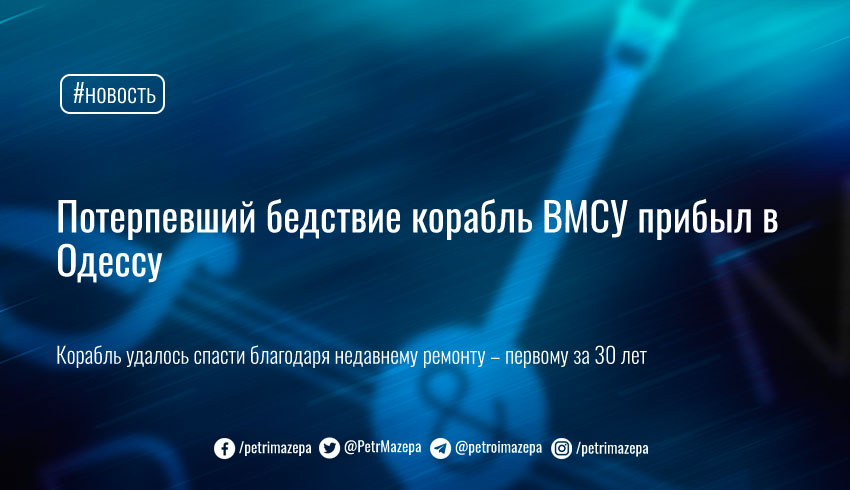 Корабель ВМС ЗС України, який зазнав лиха в акваторії Чорного моря повернувся в пункт базування Корабель Військово-Морських Сил ЗС України, який під час виконання завдань за призначенням зазнав лиха в акваторії Чорного моря повернувся до пункт постійної дислокації в місті Одеса. Не зважаючи на штормові умови, завдяки вмілим та оперативним діям екіпажу наслідки аварійної ситуації вдалось локалізувати та недопустити подальше затоплення відсіків корабля. Фахова підготовка особового складу відіграла головну роль у боротьбі за живучість корабля, адже військові моряки мають бути готові до будь-яких позаштатних ситуацій в морі та вміло реагувати на них. Саме з цією метою, починаючи з 2020 року, за наказом командувача ВМС ЗС України було відновлено проведення заходів декади живучості на кораблях та суднах забезпечення флоту. Важливим фактором, який також дав змогу втримати корабель на плаву – це нещодавно проведений ремонт, який було реалізовано на ньому вперше за останні тридцять років. Варто відмітити й професійні дії морської авіації, що здійснювала транспортування аварійно-рятувального майна та евакуацію особового складу. Корабель буде відновлено в короткі терміни, після чого він продовжить виконувати завдання за призначенням у складі ВМС ЗС України. Командування Військово-Морських Сил ЗС України висловлює слова вдячності керівництву та особовому складу казенного підприємства «Морська пошуково-рятувальна служба» Міністерства інфраструктури України, а також Державної прикордонної служби України та Державної служби України з надзвичайних ситуацій за надану допомогу.