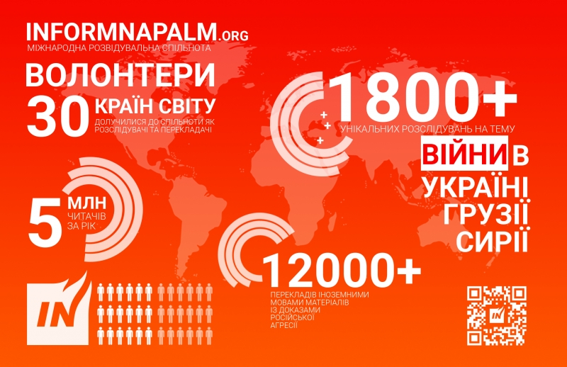 Международное разведывательное сообщество InformNapalm подготовило уже более 1800 расследований, в ходе которых было зафиксировано участие в войне на Донбассе более 1300 кадровых российских военных из 83 подразделений, базирующихся на всей территории России. В апреле 2018 года мы планируем представить интерактивную базу данных, где будут систематизированы все доказательства российской агрессии, собранные за четыре года.