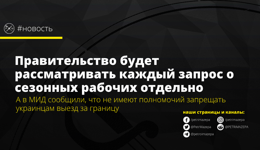 Кабинет Министров пообещал рассматривать каждый запрос стран-партнеров касаемо сезонных работников из Украины.