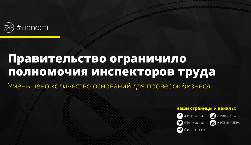Кабинет министров сократил количество оснований для проведения проверок инспекторами труда. Обновленный «Порядок осуществления государственного контроля за соблюдением законодательства о труде» утвержден постановлением правительства от 21.08.2019 года № 823 и уже вступил в силу.