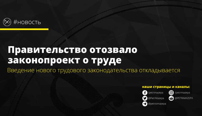 Кабинет министров отозвал законопроект №2708  о труде, который предполагал введение нового трудового законодательства.
